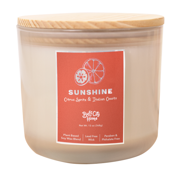 Sunshine 2-Wick Candle Made with a plant based soy wax blend and lead free wicks so your home can smell wonderful.